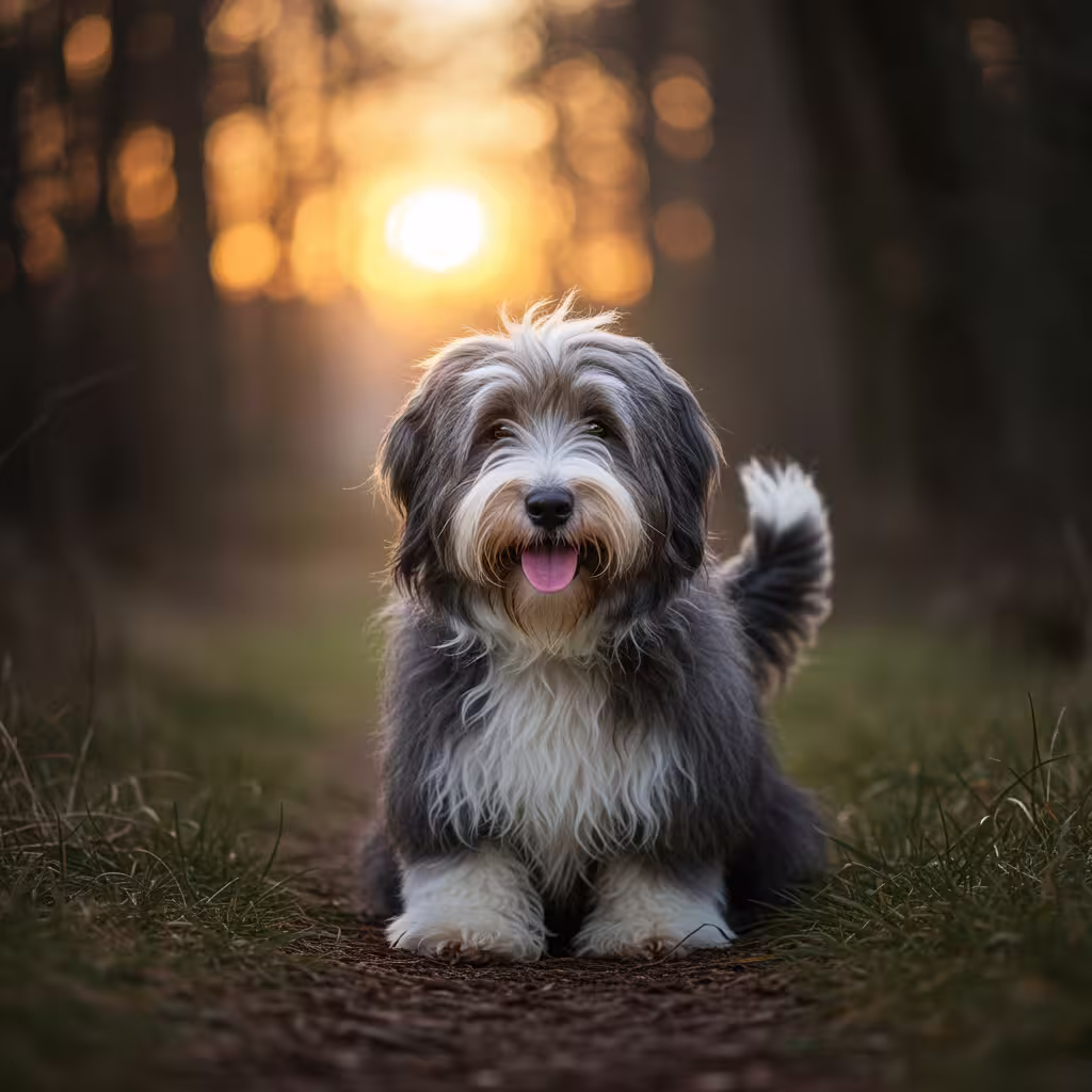 De Bearded Collie is een middelgrote, energieke en vrolijke herdershond met een opvallende lange, ruige vacht. Dit ras staat bekend om zijn levendige persoonlijkheid, intelligentie en speelsheid. Hij wordt vaak omschreven als een enthousiaste en optimistische hond die graag actief bezig is.