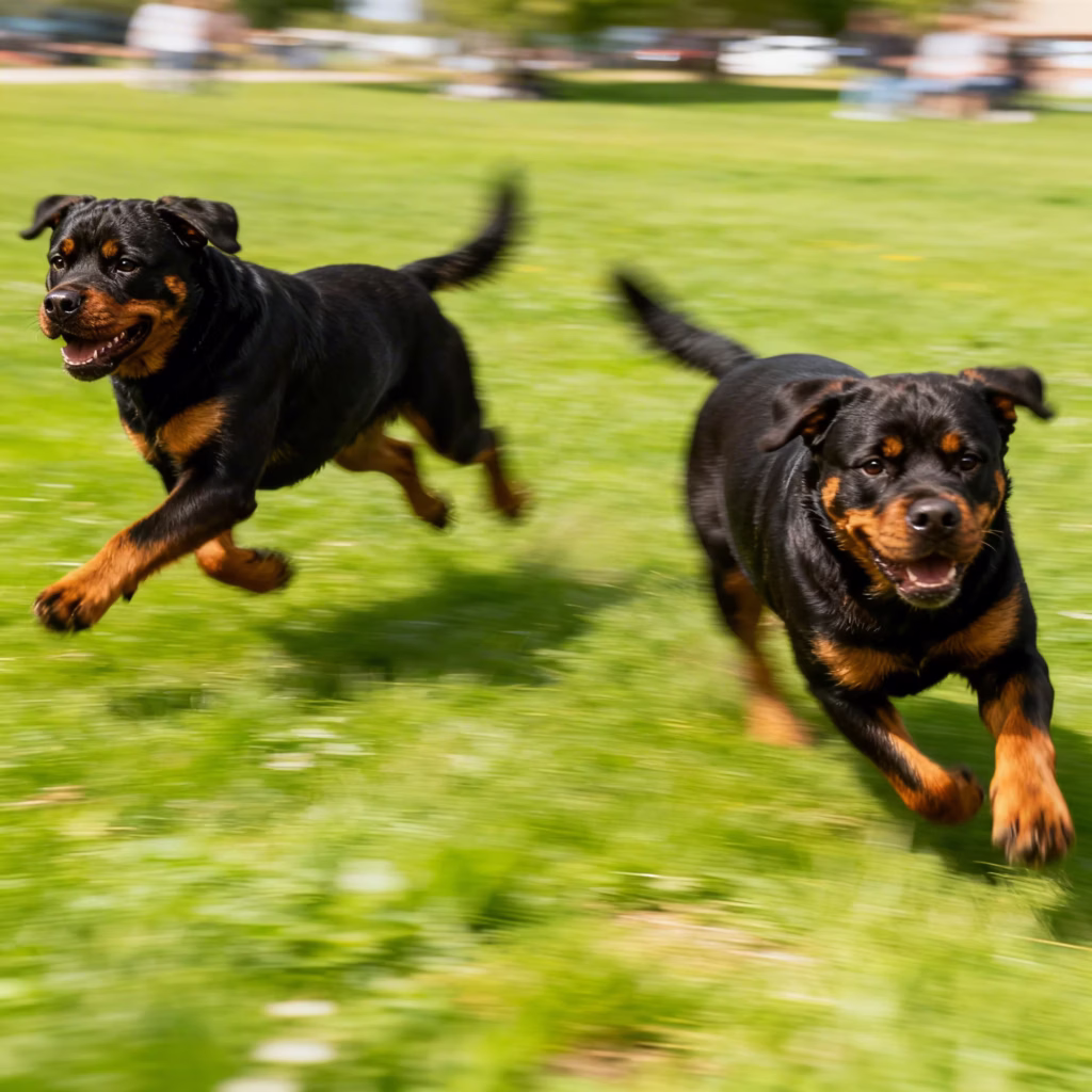 De Rottweiler heeft een gemiddelde tot hoge bewegingsbehoefte en heeft dagelijks ongeveer 1 tot 2 uur beweging nodig. Dit omvat lange wandelingen, speelmomenten en mentale stimulatie zoals gehoorzaamheidstraining of speurwerk. Hij houdt ervan om een taak te hebben en presteert goed in hondensporten. Voldoende beweging en uitdaging zijn belangrijk om verveling en gedragsproblemen te voorkomen.